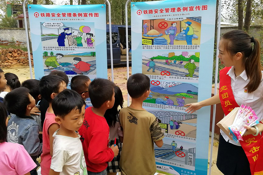 活動中,宣傳人員采取發(fā)放宣傳資料、現(xiàn)場講解、宣傳板塊展示、播放宣傳片、有獎互動等方式,形象生動地為大家介紹鐵路法律法規(guī)知識,對有關(guān)愛護(hù)鐵路、保護(hù)自身安全的常識和日常生活中發(fā)生的真實案例進(jìn)行了細(xì)致講解,結(jié)合事故案例對鐵路運(yùn)輸、村民、穿越刺繩防護(hù)網(wǎng)對學(xué)生人身安全造成的嚴(yán)重危害進(jìn)行了深入宣講。